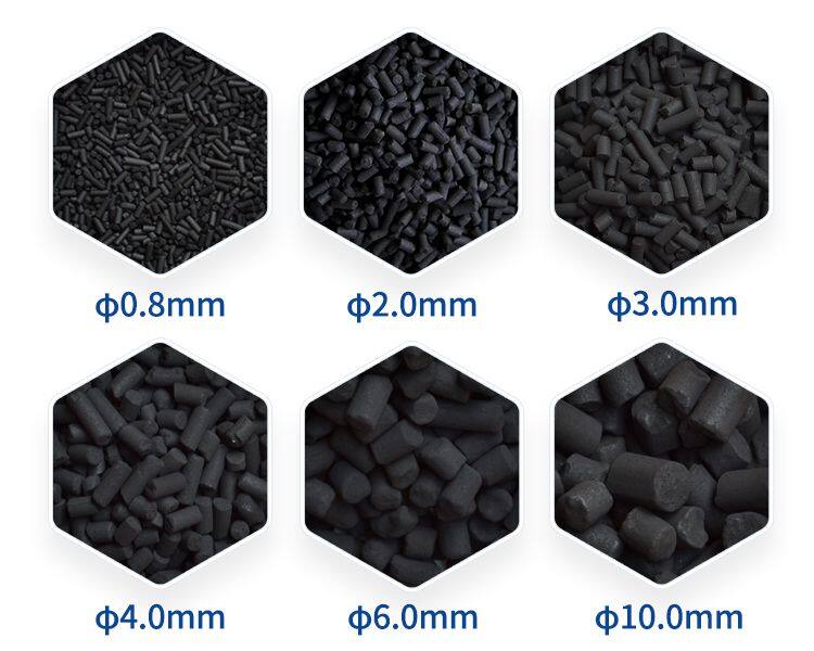 2. Its appearance is black columnar granule. 3. Its characteristics: developed pore structure, large specific surface area, strong adsorption capacity, high mechanical strength, easy to repeated regeneration, low cost, etc.Product application