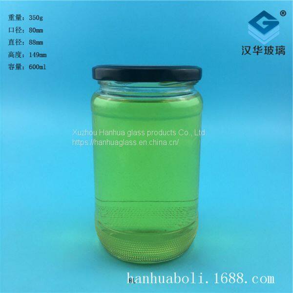 600ml Can Glass Bottle Pickle Glass Bottle Manufacturer Honey Glass Bottle Wholesale