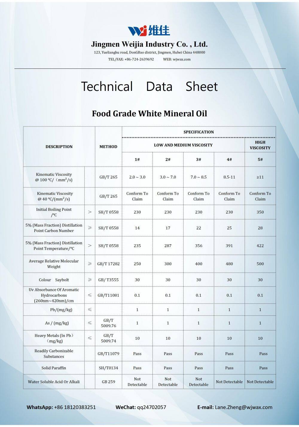 Our food grade white oil is certified by NSF, also meets US FDA standards, and has passed ISO system certification.