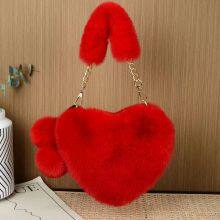 023Plush Bag Heart Shape Women's Handbag Fashion Fur Bag Soft Work Phone Bag Children's Shoulder Bag