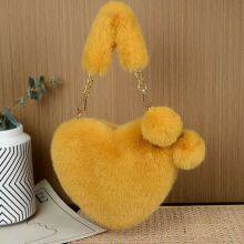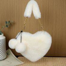 023Plush Bag Heart Shape Women's Handbag Fashion Fur Bag Soft Work Kids Shoulder Bag
