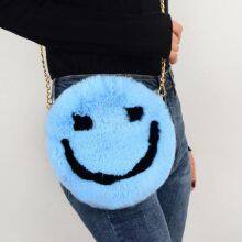 029Plush Bag Round Smiley Bag One Shoulder Oblique Straddle Bag Girls Fur Bag