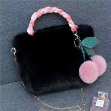 09Cute Fur Bag Plush Tote Cherry Bag Shoulder Bag Women's Fashion Chain Bag