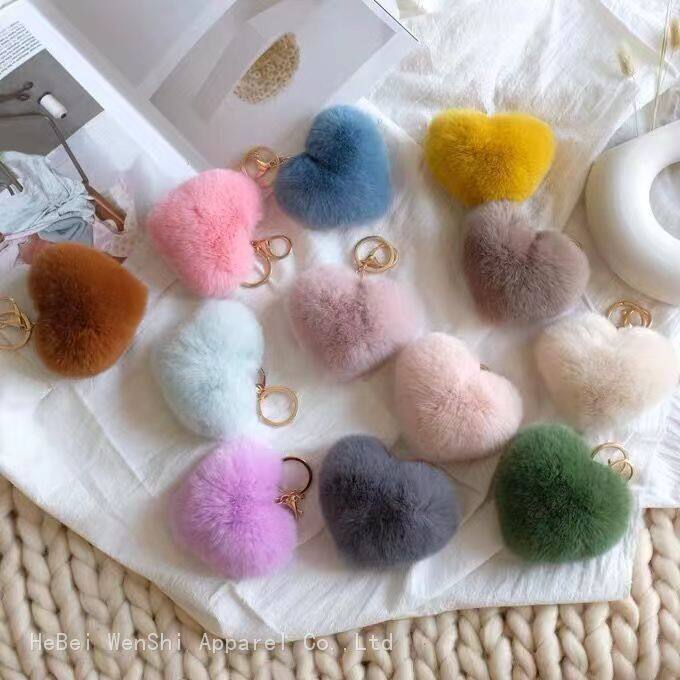 60Cute Fashion Love Hairball Keychain Student Bag Hanging Plush Car Key Chain Friend Gift