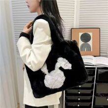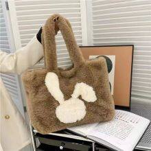 34Autumn and Winter Plush Bag Square Large Capacity Female Bag Soft Handbag Shoulder Cute Rabbit Pattern Fashion Fur Bag Wholesale