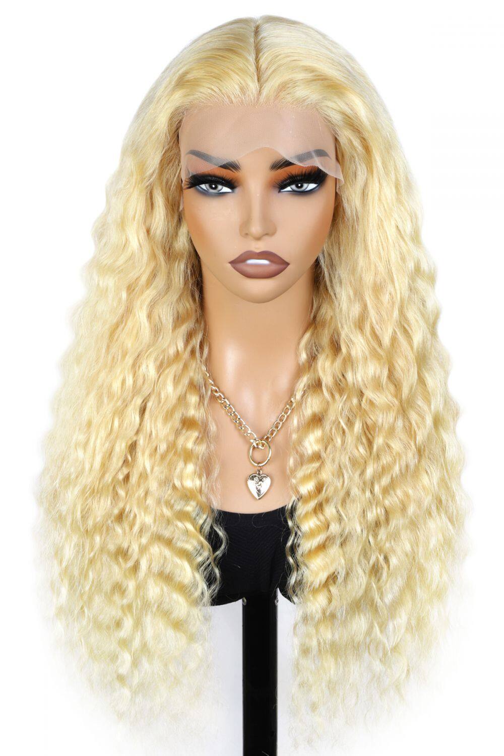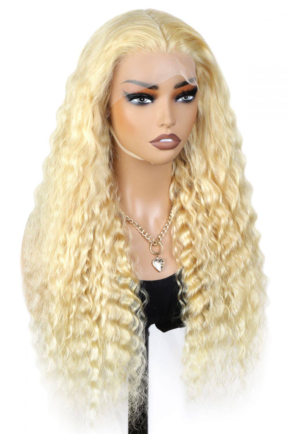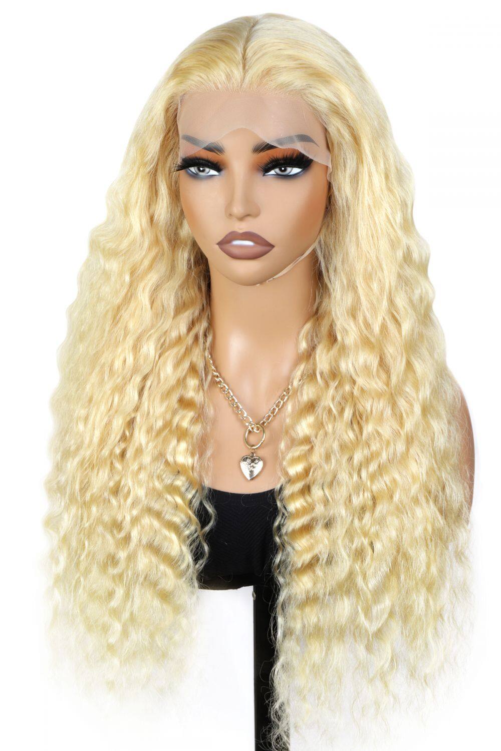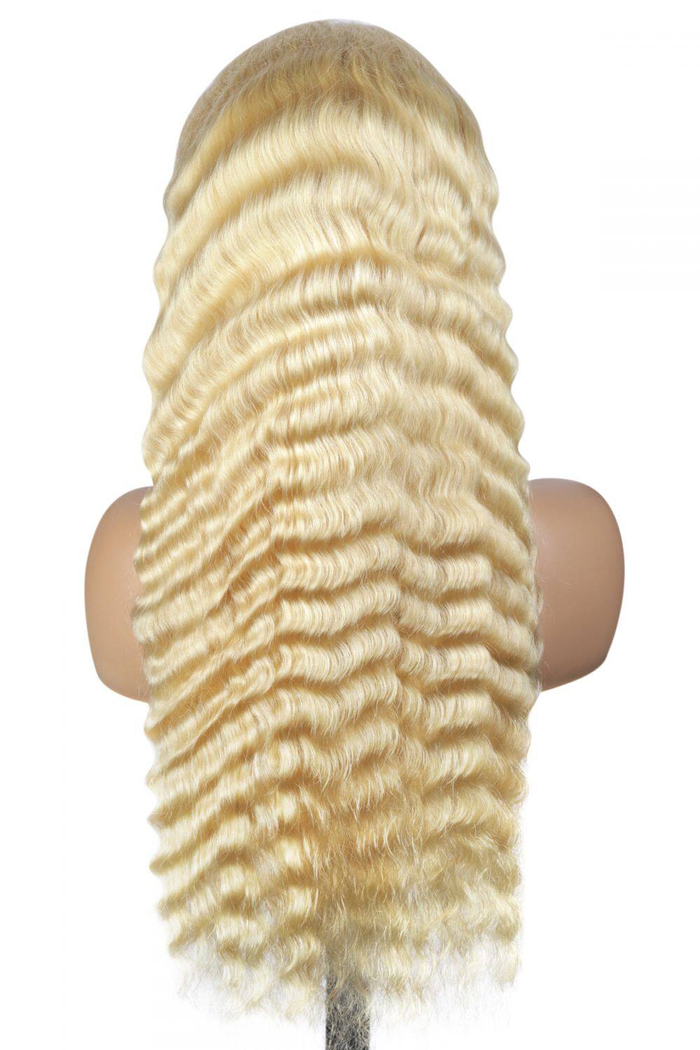 - Blonde Wig 100% Human Hair Virgin Hair Lace Wig Deep Wave
