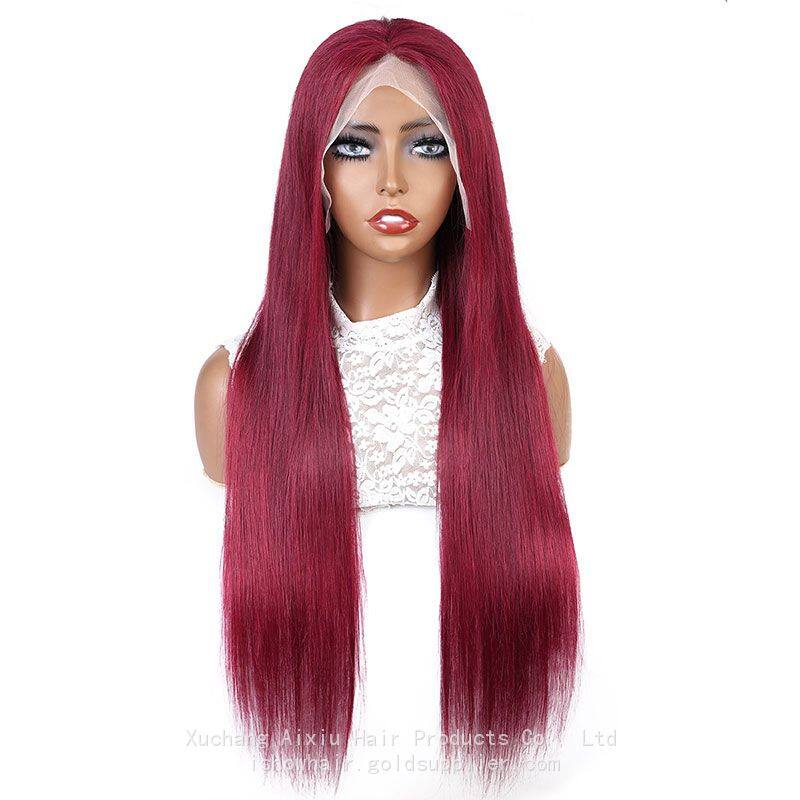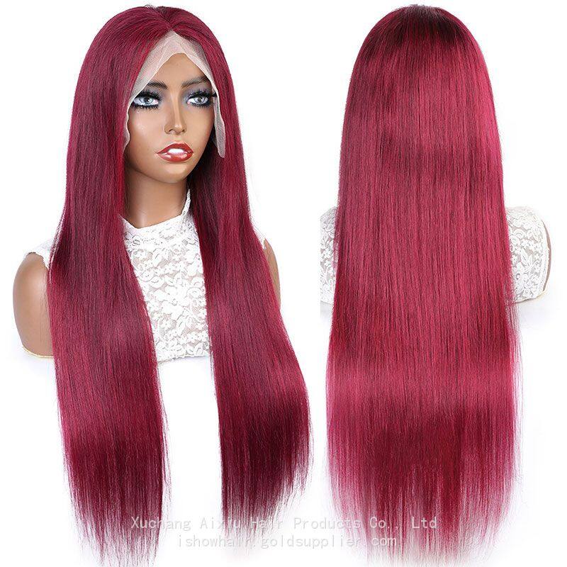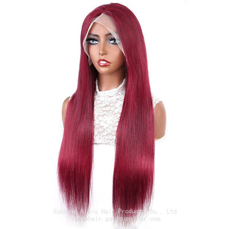 Red#straight Hair Wave Lace Front Wig Human Hair Wigs 13X4 Lace Front Wig