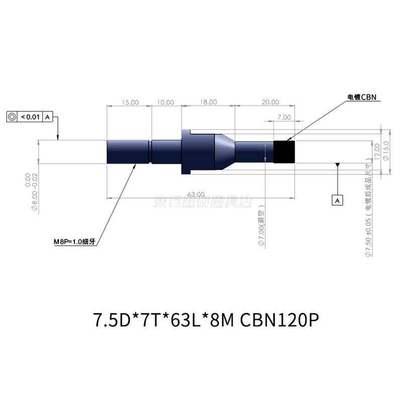 Specification: 7.5D * 7T * 63L * 8M CBN120P
