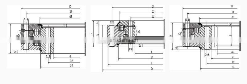 It is composed of two or three rings. It has compact structure, light weight, high manufacturing accuracy, small assembly gap and high requirement for installation accuracy. Rollers are 1:1 cross-arranged. It can bear axial force, overturning moment and large radial force at the same time. It is widely used in lifting transportation, construction machinery