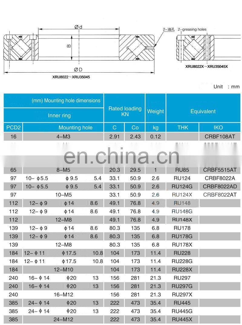 RU85 Factory Slewing Ring Bearings Price, Slewing Ring Cross Roller Bearing for Medical Machine