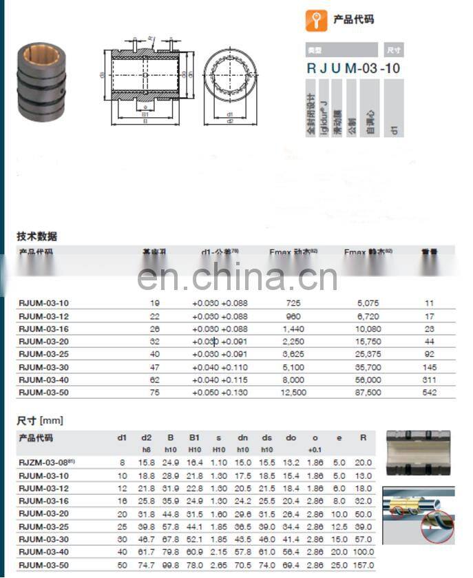 RJUM-03-25 Factory Price Self Lubricating Engineering Plastic Linear Bearing