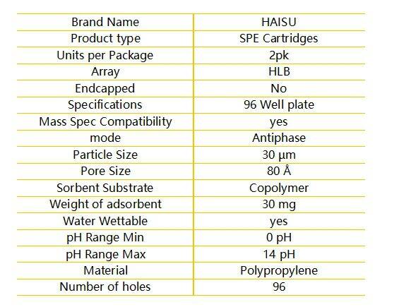 Home > Products > Sample Preparation Products > HAISU HLB 96-well Plate, 30 mg Sorbent per Well, 30 μm, 2/pk