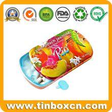 Rectangular Candy Mint Tin With Hinges And Plastic Insert For Freshness