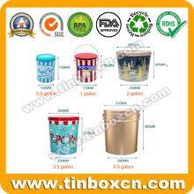 1/2/3.5/6.5 Gallon Customized Popcorn Tin Basket With Lid and Handle
