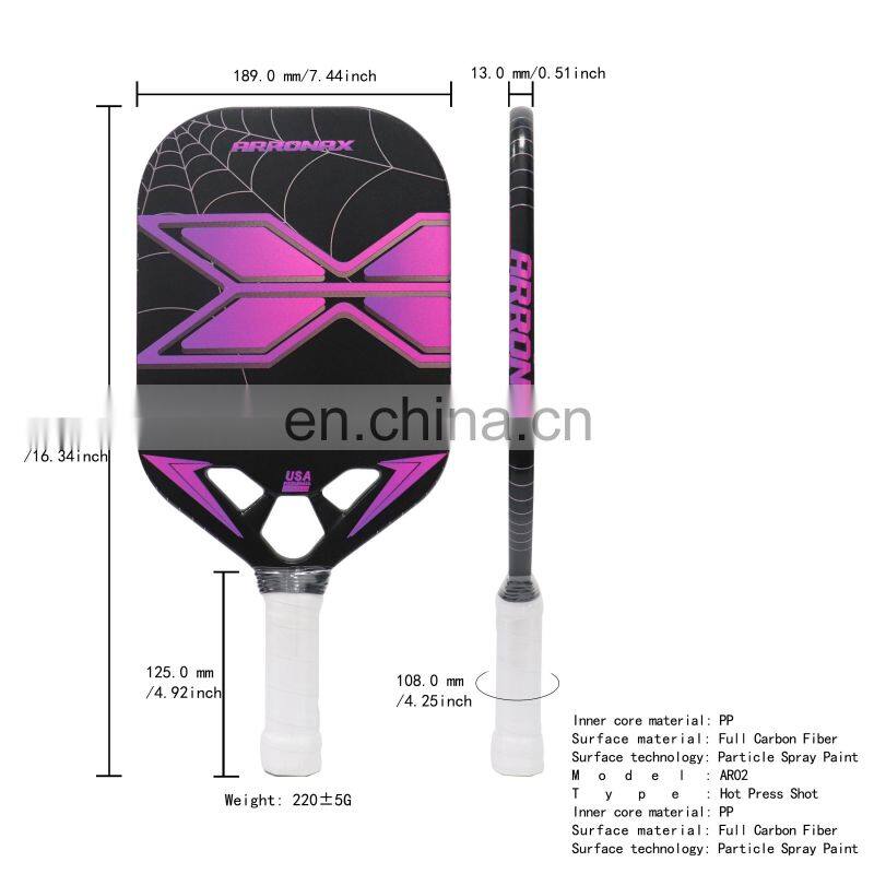 2023 New Arronax USAPA Approved 13MM Thickness Full Carbon Particle Spray Paint Surface PP Core Pickleball Racket