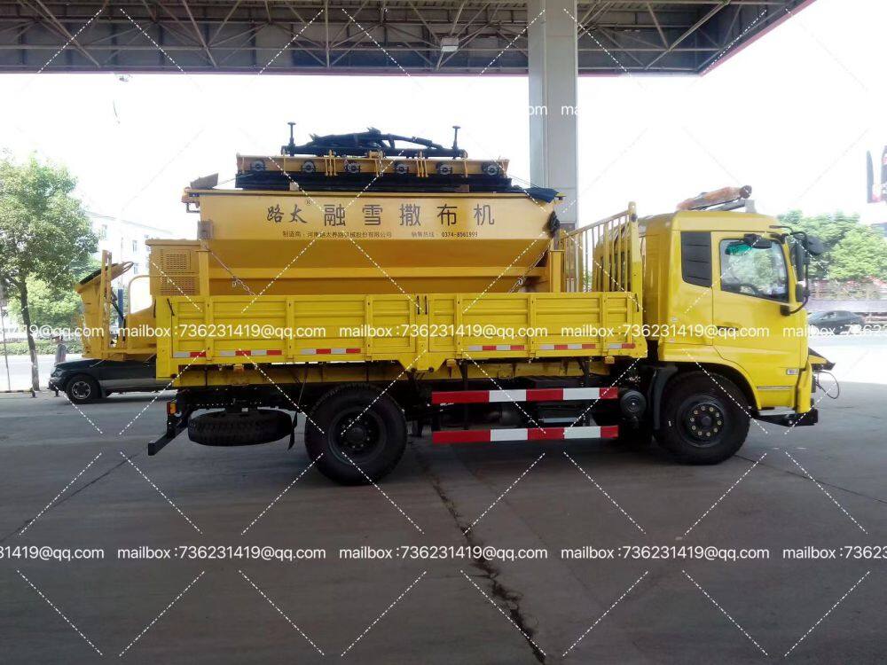1. Used for snow and ice removal on urban transportation and highway roads. When carrying out snow removal operations, the rear sprinkler disc evenly sprays the snow melting agent onto the road surface, increasing the freezing point of the snow melting and effectively preventing road icing. The hydraulic motor speed of the sprinkler disc can be adjusted according to the working environment. Strictly controlling the amount of spillage can effectively remove snow and ice, and minimize pollution.