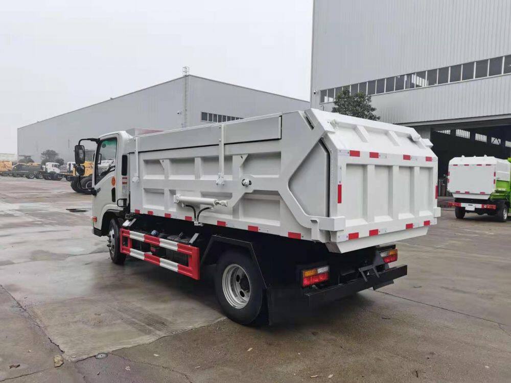 4. Sealing treatment to eliminate secondary pollution: Garbage is in a closed state during compression, loading, and transportation. The joint surface between the garbage bin and the filler is equipped with a special rubber sealing strip, which is compressed and sealed with a locking device; The sewage tank is equipped with a unique drain valve, which is reliably sealed and not easily clogged. The optional filler cover completely covers the feeding port of the filler, eliminating the phenomenon of garbage and dust flying caused by the disturbance of vehicle exhaust flow during transportation, and making the appearance more beautiful.