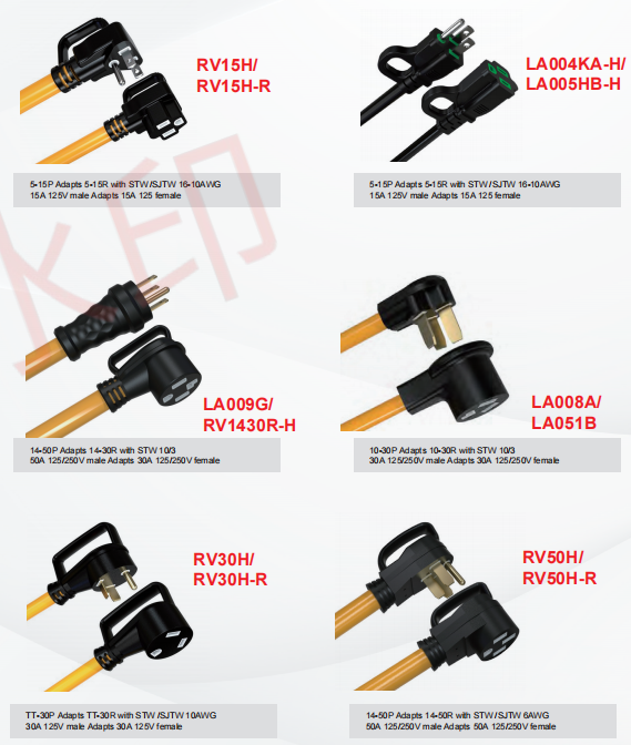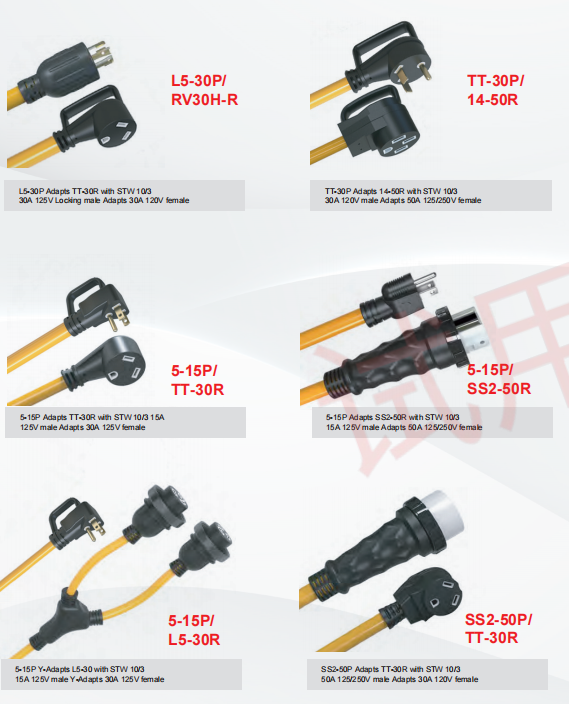 NEMA 10-20P/NEMA 10-20R NEMA 10-30P/NEMA 6-30R NEMA 10-50P/NEMA 10-50R
