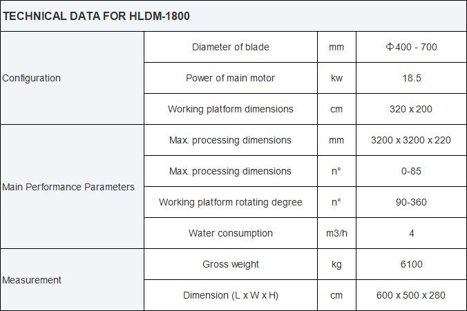 | Model Number | HLDM-1800 | Type | Stone Cutting Machine | |