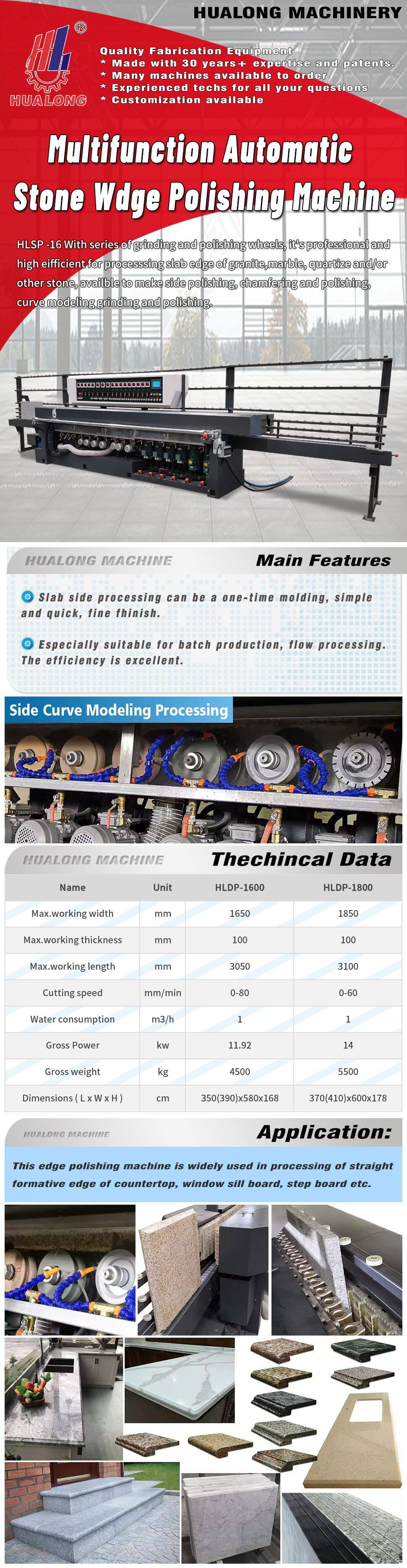 Stone Edge Grinding & Polishing MachineHLSP -16 With series of grinding and polishing wheels, it's professional and high eifficient for processsing slab edge of granite, marble, quartize and/or other stone, availble to make side polishing, chamfering and polishing, curve modeling grinding and polishing.