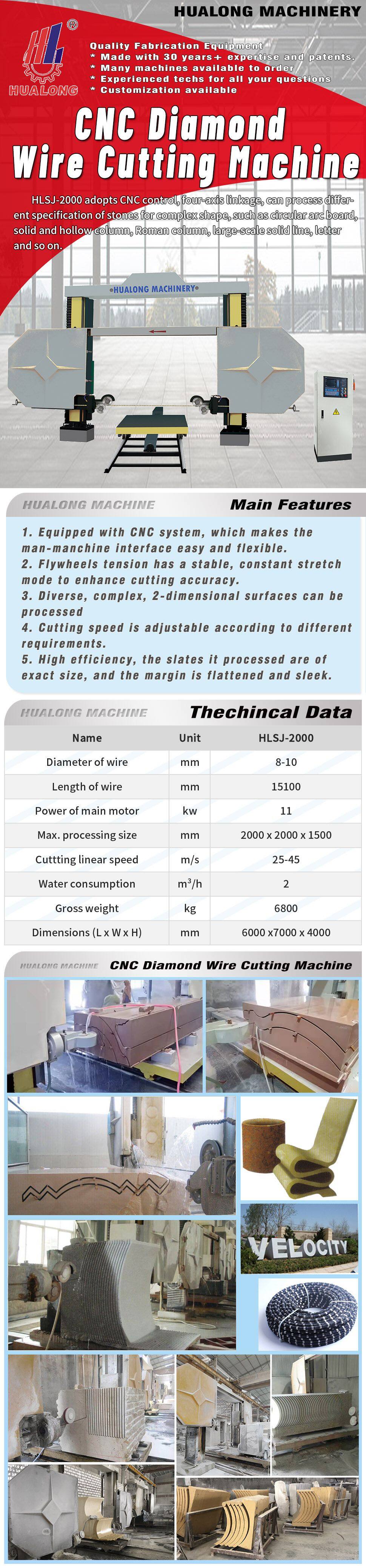 HLSJ-2000 adopts CNC control, four-axis linkage, can process different specification of stones for complex shape, such as circular arc board, solid and hollow column, Roman column, large-scale solid line, letter and so on.