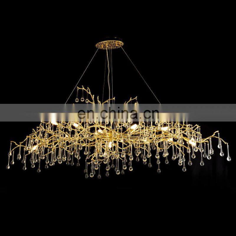 High Quality Luxury Modern Crystal Chandelier Lighting Gold Copper Tree Branch Hanging Lamp for Staircase