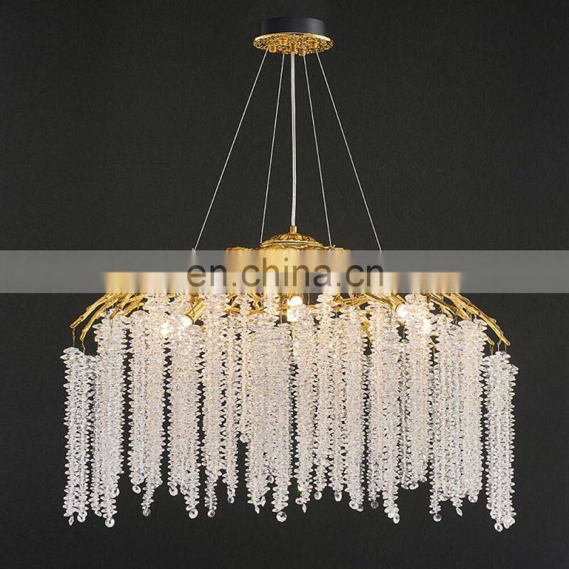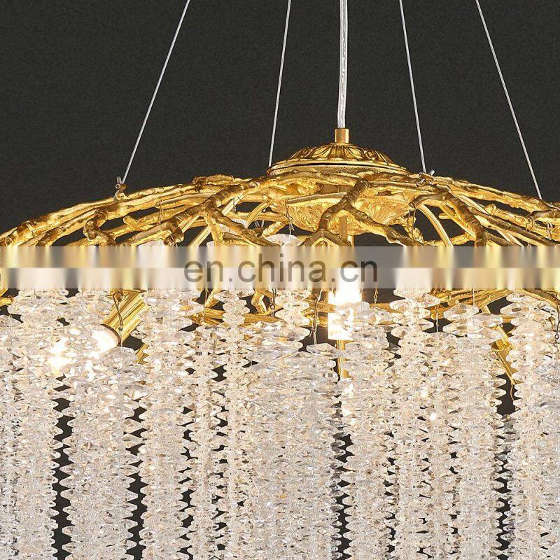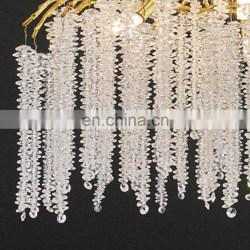Luxury Modern Crystal Chandelier Lighting Gold Copper Tree Branch Raindrop Hanging Lamp for Hotel Project Villa