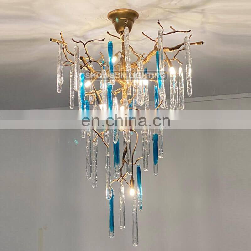 Indoor Light Fixtures Creative Glass Chandelier Tree Branch Brass Crystal Chandelier Lighting
