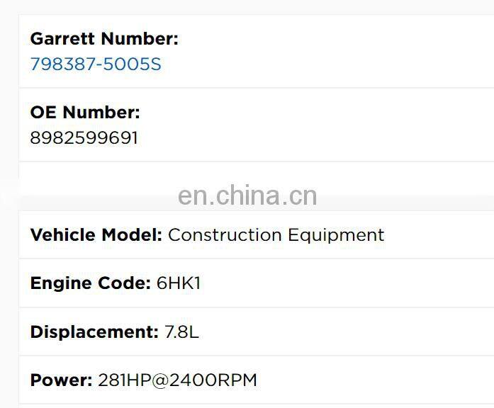 GTA4082KLNV Turbocharger 798387-0005 8982599691 Construction Equipment Engine 6HK1 Turbo 798387 798387-5005S