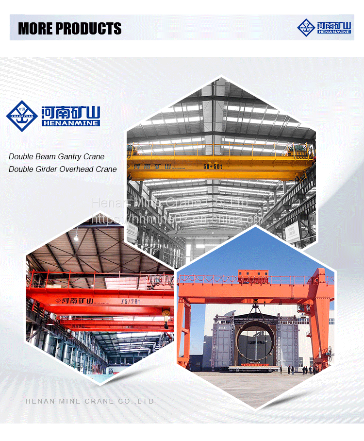 The upper bridge (including main beam and end beam), support legs, lower crossbeam, and other parts of the gantry of the European gantry crane are composed. In order to expand the operating range of the crane, the main beam can extend beyond the support legs to one or both sides, forming a cantilever. A lifting trolley with a boom can also be used to expand the operating range of the crane through the pitch and rotation of the boom.