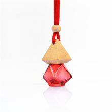 Diamond Shaped Red Glass Perfume Bottle With Wooden Lid and Tying Rope Glass Perfume Bottle Car Perfume Empty Bottle