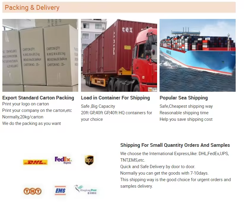 A:By sea, by air or by express carriers (UPS, FedEx, TNT) transit time depends on freight rates.