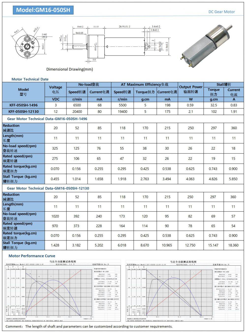 GM16-050 16mm dc Gear Motor 6v Geared dc Motor