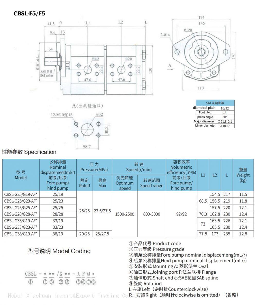 Engineering Vehicle Hydraulic Gear Pump CBSL-F5F5