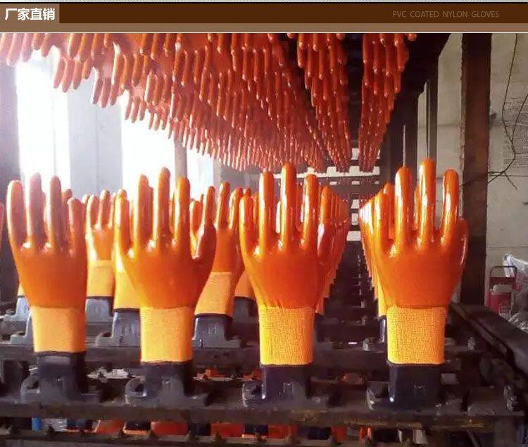 Orange Polyester Thread Knitted PVC Full Hand Coated Water-proof Safety Work Gloves