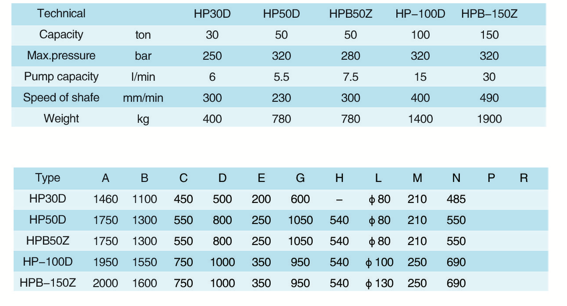 Model  | units  | HP-30  | HP-50  | HP-63  | HP-100  | HP-150  |