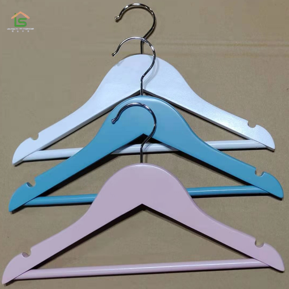 Longson High Quality Low MOQ Colorful Wooden Hangers Custom Logo Durable Wooden Hangers For Clothes