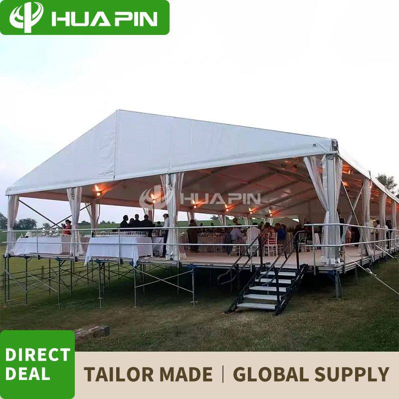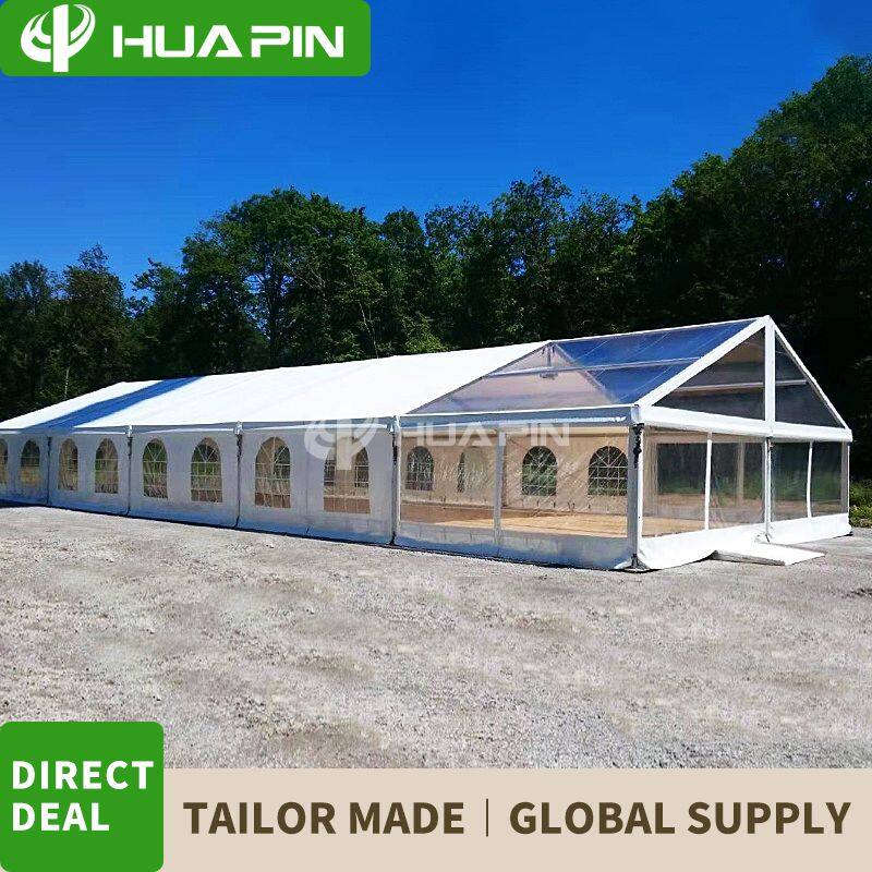 Huapin Construction Technology (Guangdong) Co., Ltd. Specializes in outdoor aluminum alloy tent structure design, quality management, global sales. Satisfaction with our customers for large wedding tents, party tents, outdoor activities, exhibition tents, sports tents, Logistics storage tents, reception tents, sports event tents, temporary meeting tents, etc., have a wide range of uses to meet the needs of the majority of customer groups. It has been exported to more than 150 countries and regions, and has been unanimously trusted and praised by customers. Our business philosophy: adhering to the quality and service to accompany you throughout the process, customer satisfaction is our eternal pursuit.Huapin tents continue to innovate and develop and help customers choose the prefabricated aluminum alloy structure building tents that fit the market specifications, and make every detail with the technology of excellence. At the same time, we have many years of experience in import and export of tents and professional technicians to provide solutions.