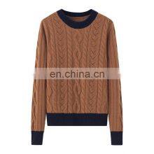 Custom Women's Winter Fashionable Thick Crew Neck Jumper Cable Knit Fashionable Winter Cashmere Sweater