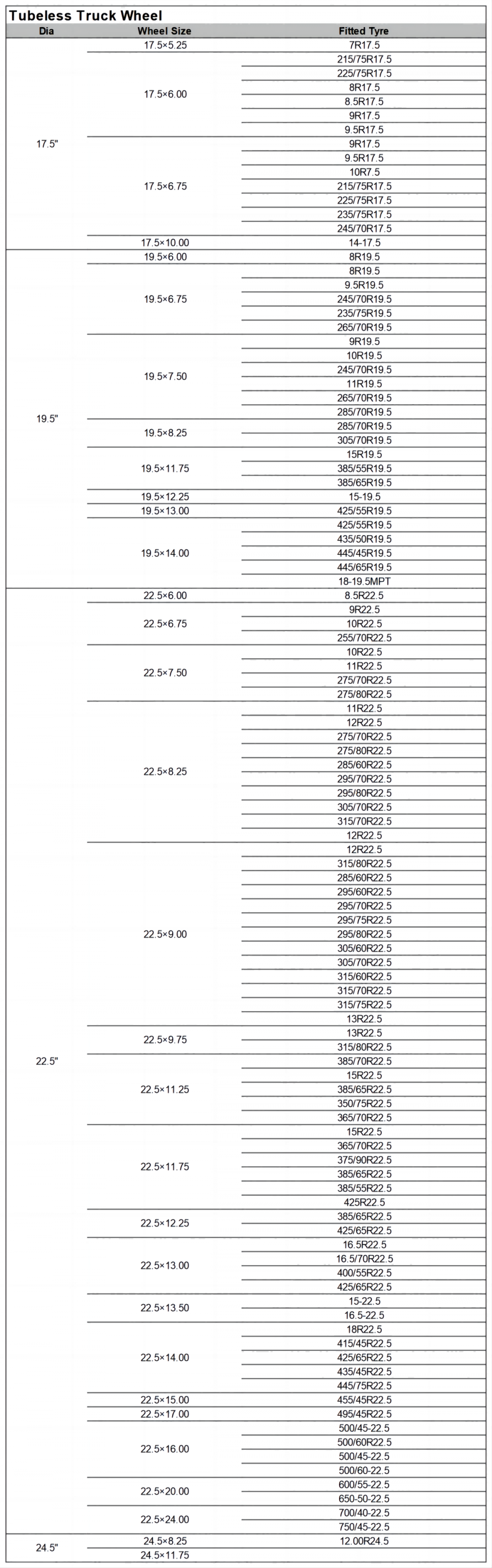 For the Truck wheels, we are available the diam from 15" to 24" which can be used on truck, trailer and bus etc.