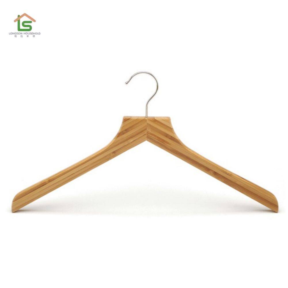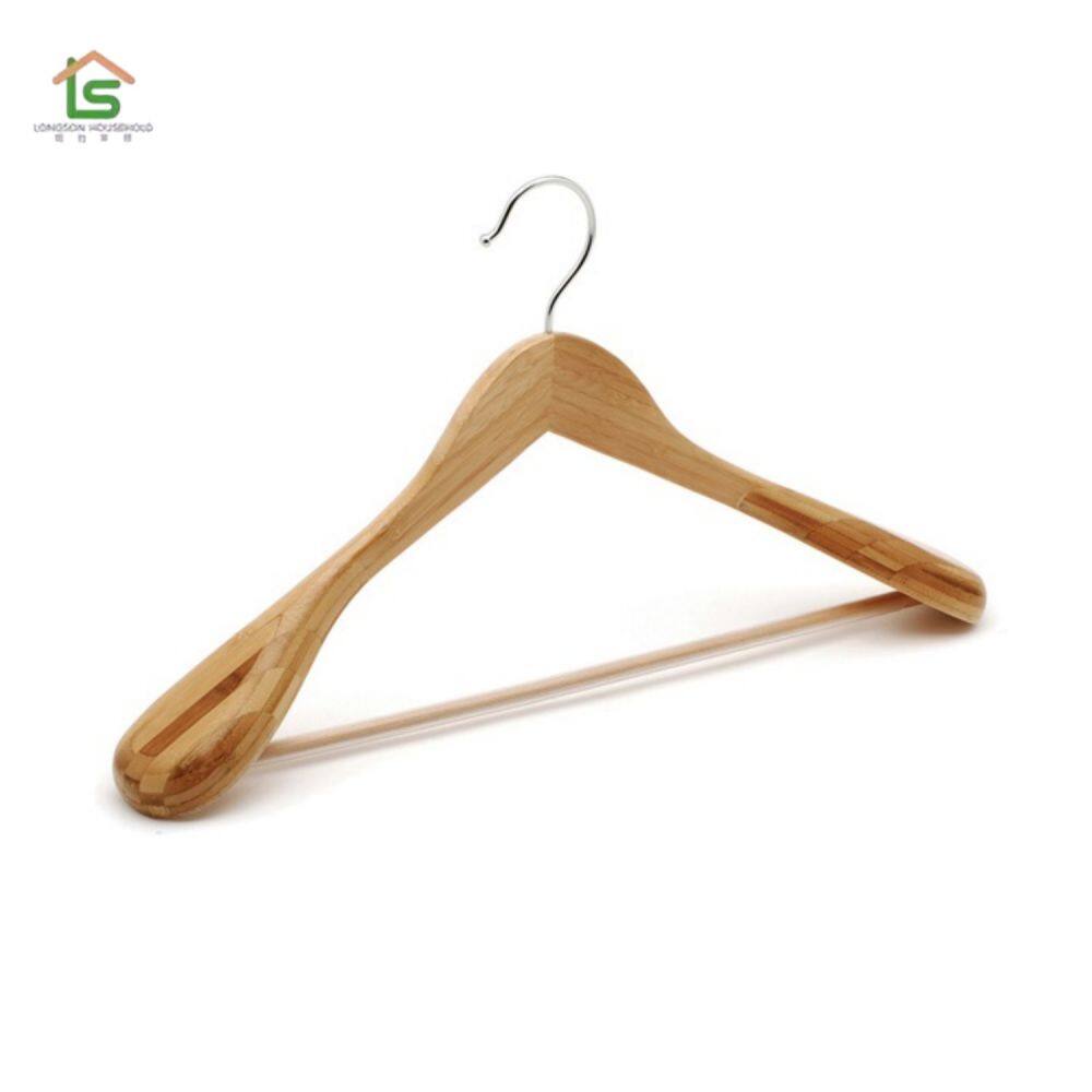 Longson Wide Shouder Wooden Hanger Coat Hanger With Bar and Chrome Hook for Display