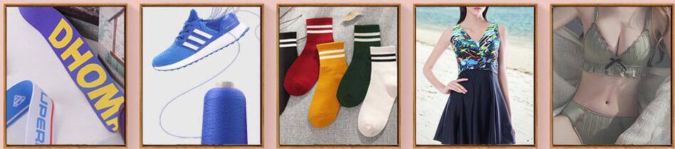 | Application | elastics, socks, shoes upper, covering stitch,gloves, collar, bag, hat, wrist band, watch band, eye cover, laptop protection cover, VR glasses etc. |