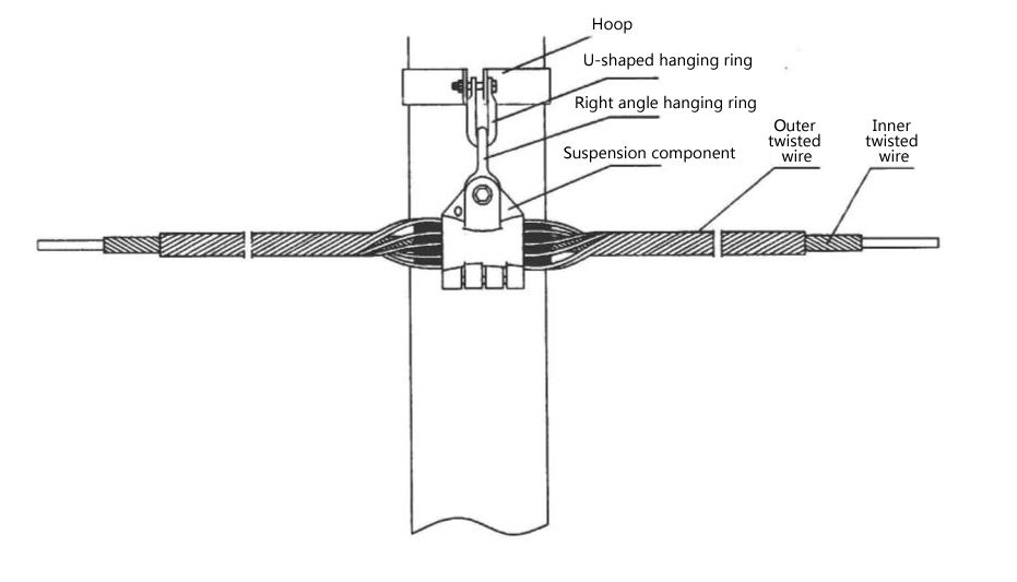c. The direction of rotation of the twisted wire inside the clamp is opposite to that of the outer layer of OPGW. The standard configuration is based on the right rotation of the outer layer of OPGW. If the outer layer of OPGW is twisted to the left, it should be specified in the purchase contract.