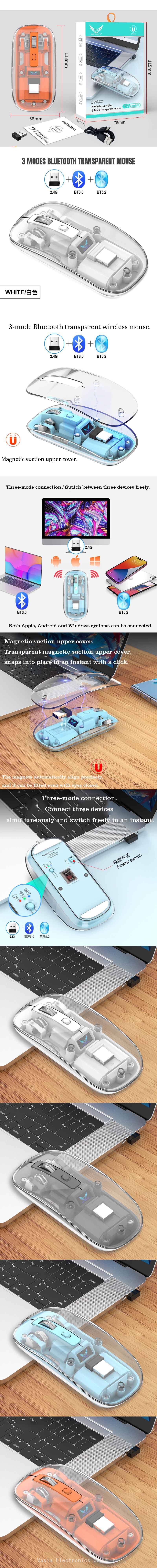 Home > Products > Other > Three Modes BT 2.4G Transparent Armored Wireless Mouse With Battery Level Display for Gaming Working Studying Gifting