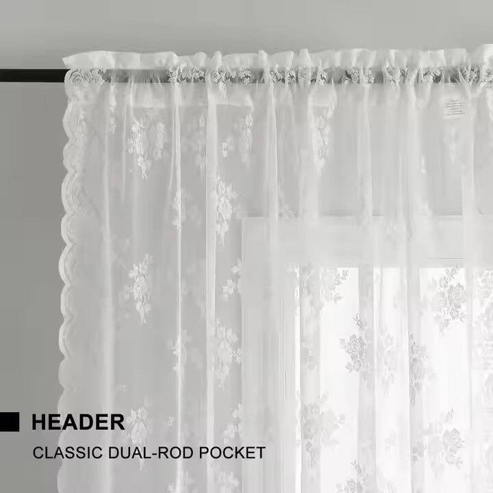 Delicate Tulle Floral Lace Design - Made with poly and scalloped trim lace, floral lace curtains are gorgeous and an elegant way to dress your windows. These lace curtains are available in various sizes and colors and curtains with laced edges add on an extra touch of detail.Our lace curtains can make any house feel like a home. By creating a modernized feel, these lace curtains can bring character to your home.