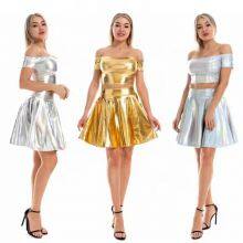 Nylon Spandex Fabric for Hot Sexy Metallic Crop Clubwear Suits Top and Skirt Ballroom Disco Party Pole Dance Wear
