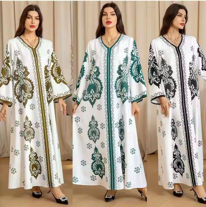 Plush Microfiber Fabric for Spring Dubai Abaya Casual Print Dresses for Women Exotic Turkey Arabic Muslim Dress Islamic Clothing Musulmane Femme Vestidos