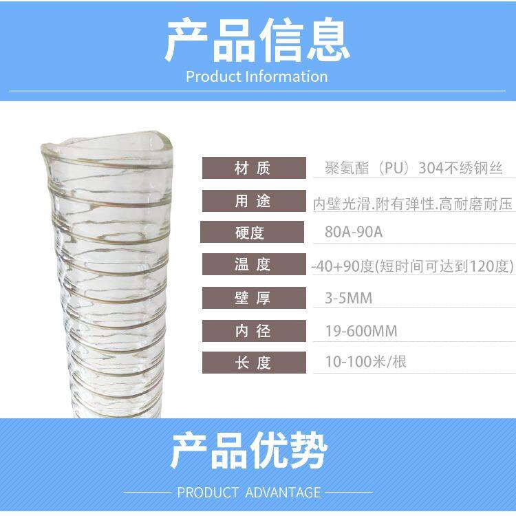 Thickened Transparent PU Anti-abrasion Dust Removal PipeWoodworking Machinery Dust Removal Ventilation Pipes