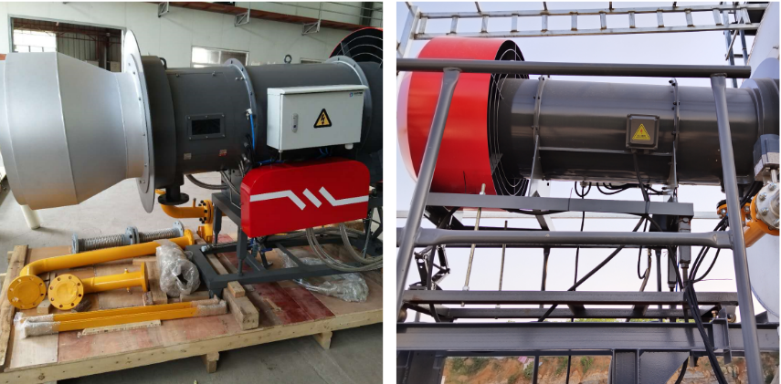 1. Installation of burner body. According to the actual situation of the site, combined with the overall size of the burner, determine the direction arrangement of the drum, gas pipeline and air duct (split machine). The interface flange of the burner and the roller needs to be made by the customer on site.