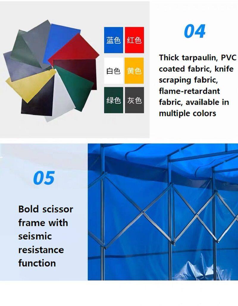 3. Surrounding fabric and door curtains. For optional items, buyers can decide whether to choose according to their own needs, and can choose single-sided/double-sided/three side/four side, calculated separately, also based on square meters. Scraping cloth costs $2.5/m2, and flame retardant cloth (560g) costs $2.9/m2.